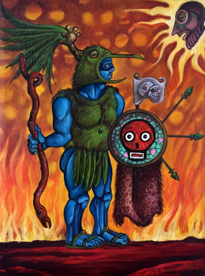 The Great War God Huitzilopochtli, 2015, oil on canvas, 8 by 12″