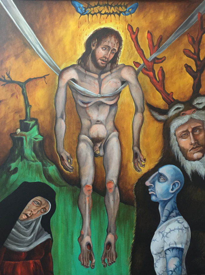 The Descent from the Cross, 2015, acrylic on canvas, 30 by 40″