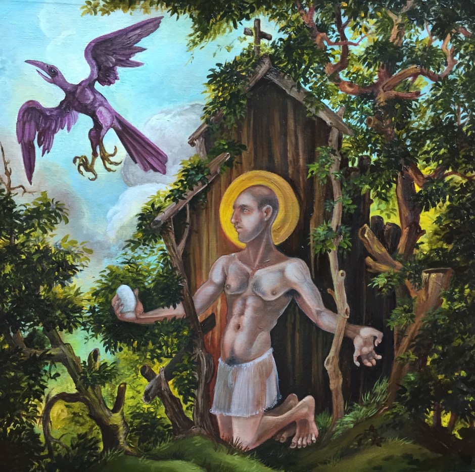 St. Kevin and the Blackbird, 2016 oil on panel 12 by 12″