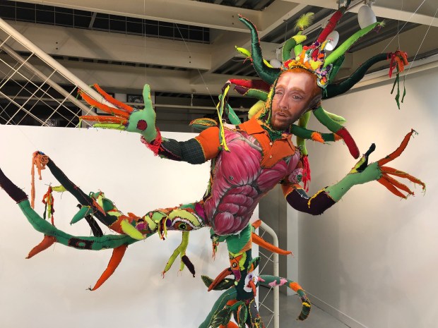 Lilith (the Mandrake) Lilith ( the Mandrake)2018Mixed media: acrylic painted canvas, recycled fiber, embroidery floss, poly-fillh. 6,6″, w.6’0′, d.,4’0″ Share this: Click to share on X (Opens in new window) X Click to share on Facebook (Opens in new window) Facebook Like Loading... Related