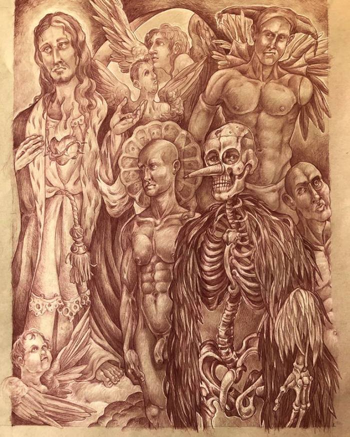26907656_10214699489190463_739459607807371263_n The Harrowing of Hell 2018 Sanguine pencil, white charcoal highlights on toned paper 24 by 18 inches