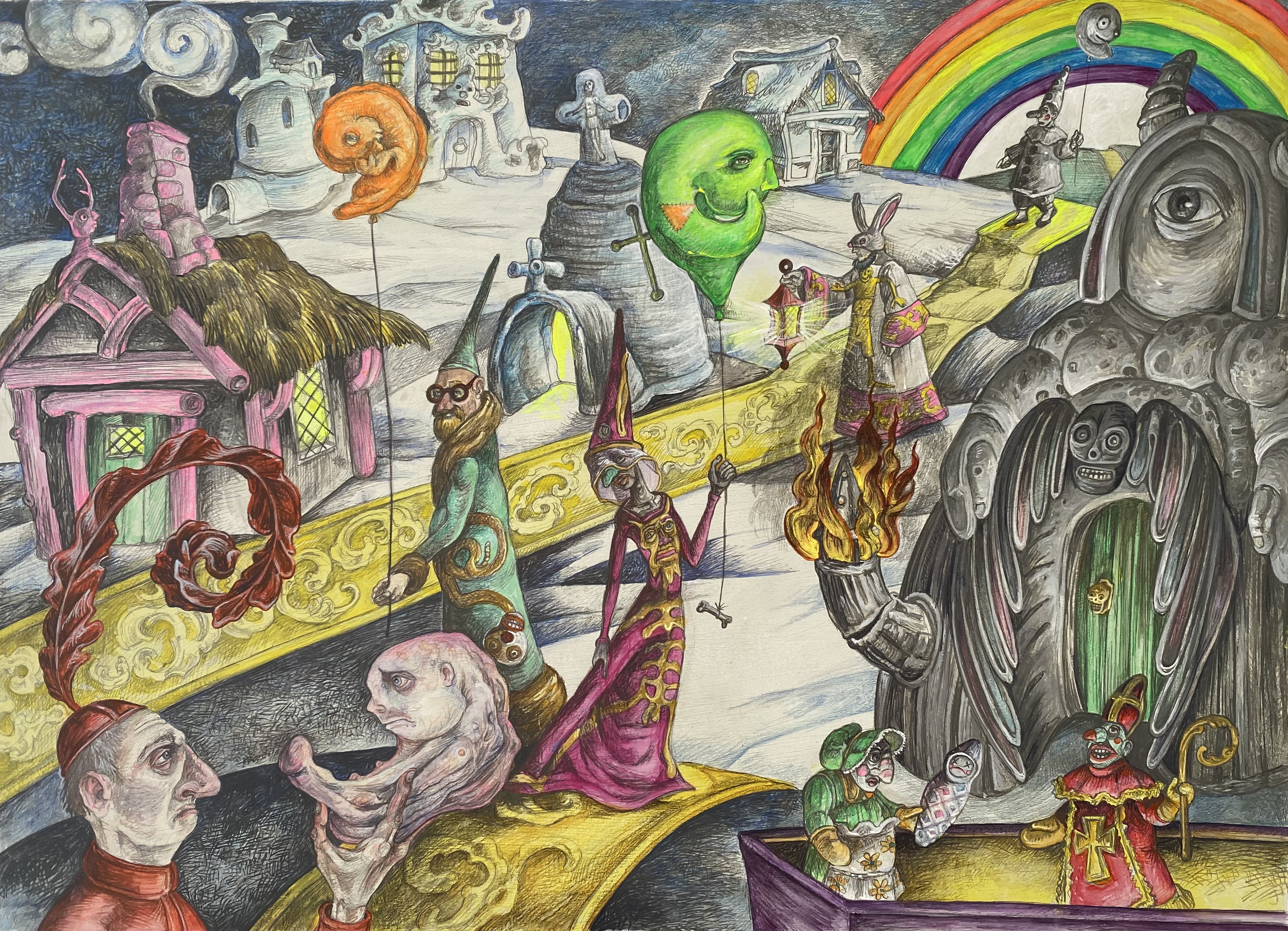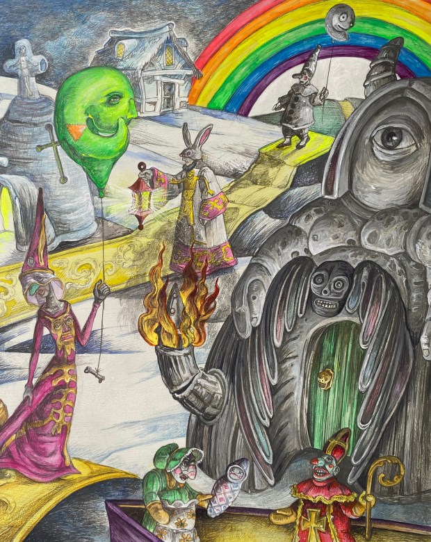 Molochville Molochville2023Graphite and watercolor on illustration board15 by 20 inches Detail, “Molochville” Detail:”Molochville” Molochville2023Graphite and watercolor on illustration board15 by 20 inches Share this: Click to share on X (Opens in new window) X Click to share on Facebook (Opens in new window) Facebook Like Loading... Related