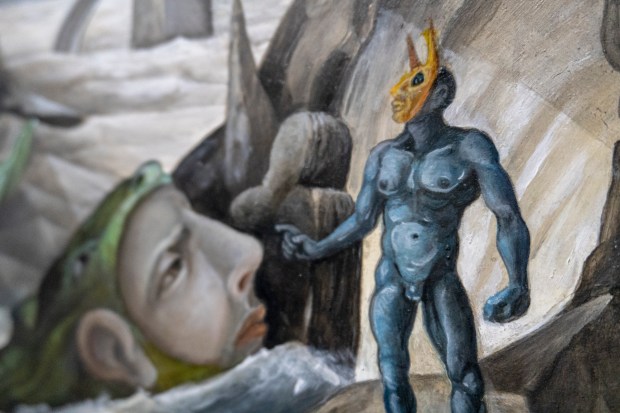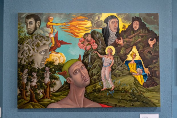 The work presented at Fairyland are these familiar themes, explored many times over by countless artist; yet this time reimagined through a prism of my own. My play upon cultural themes hopefully adds a sentence or two to this ongoing cultural conversation. Working in variety of mediums, and a fabulist by nature, it is my intention to create a theatrical spectacle that is peculiar, visually arresting and deeply personal. Although the work is made solely for my own delight, I hope others find the work meaningful in some way. I also hope visitors feel inspired to resist the siren call of selfies and pause instead, if only for a moment, as these works are visually dense and to add their own voice to this enriching and frequently neglected conversation.