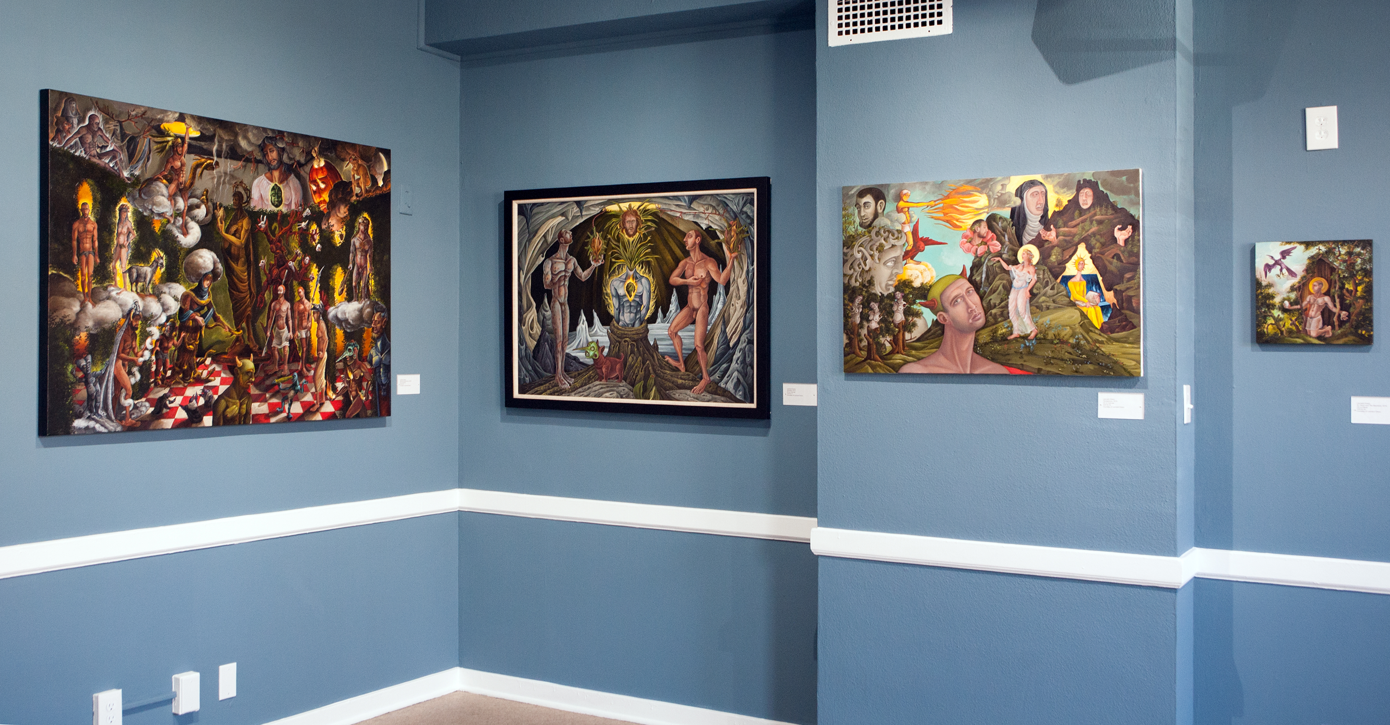 The work presented at Fairyland are these familiar themes, explored many times over by countless artist; yet this time reimagined through a prism of my own. My play upon cultural themes hopefully adds a sentence or two to this ongoing cultural conversation. Working in variety of mediums, and a fabulist by nature, it is my intention to create a theatrical spectacle that is peculiar, visually arresting and deeply personal. Although the work is made solely for my own delight, I hope others find the work meaningful in some way. I also hope visitors feel inspired to resist the siren call of selfies and pause instead, if only for a moment, as these works are visually dense and to add their own voice to this enriching and frequently neglected conversation.