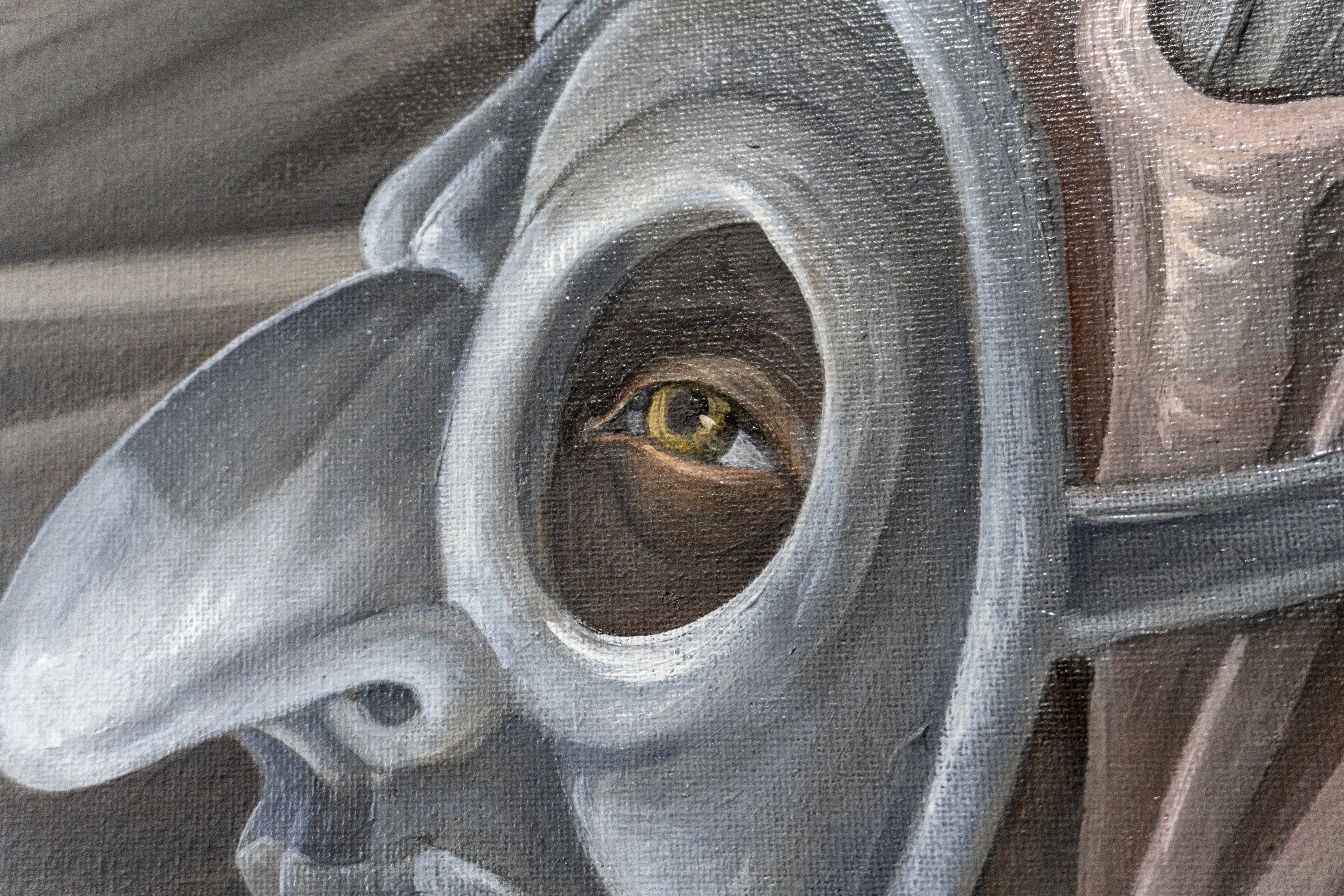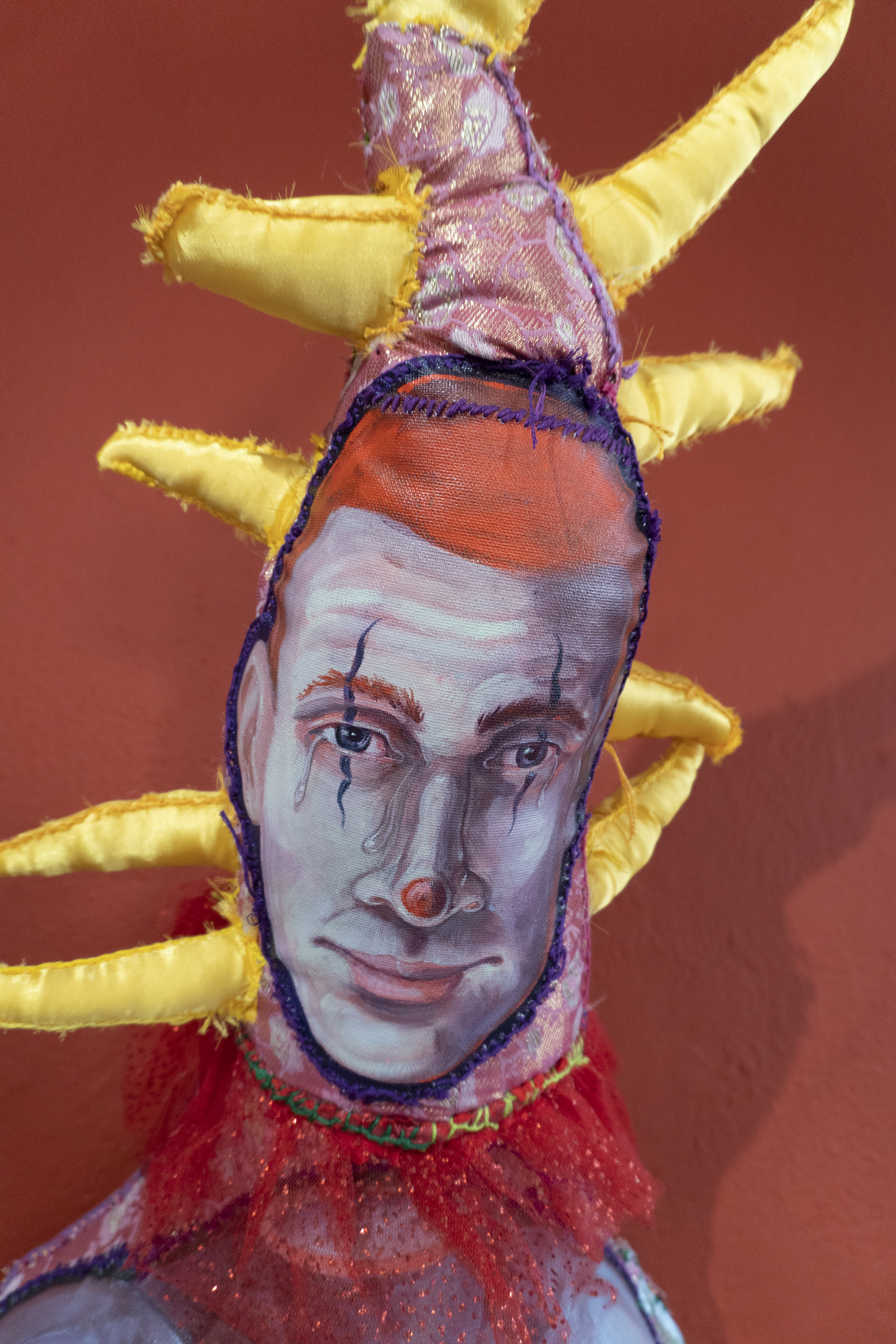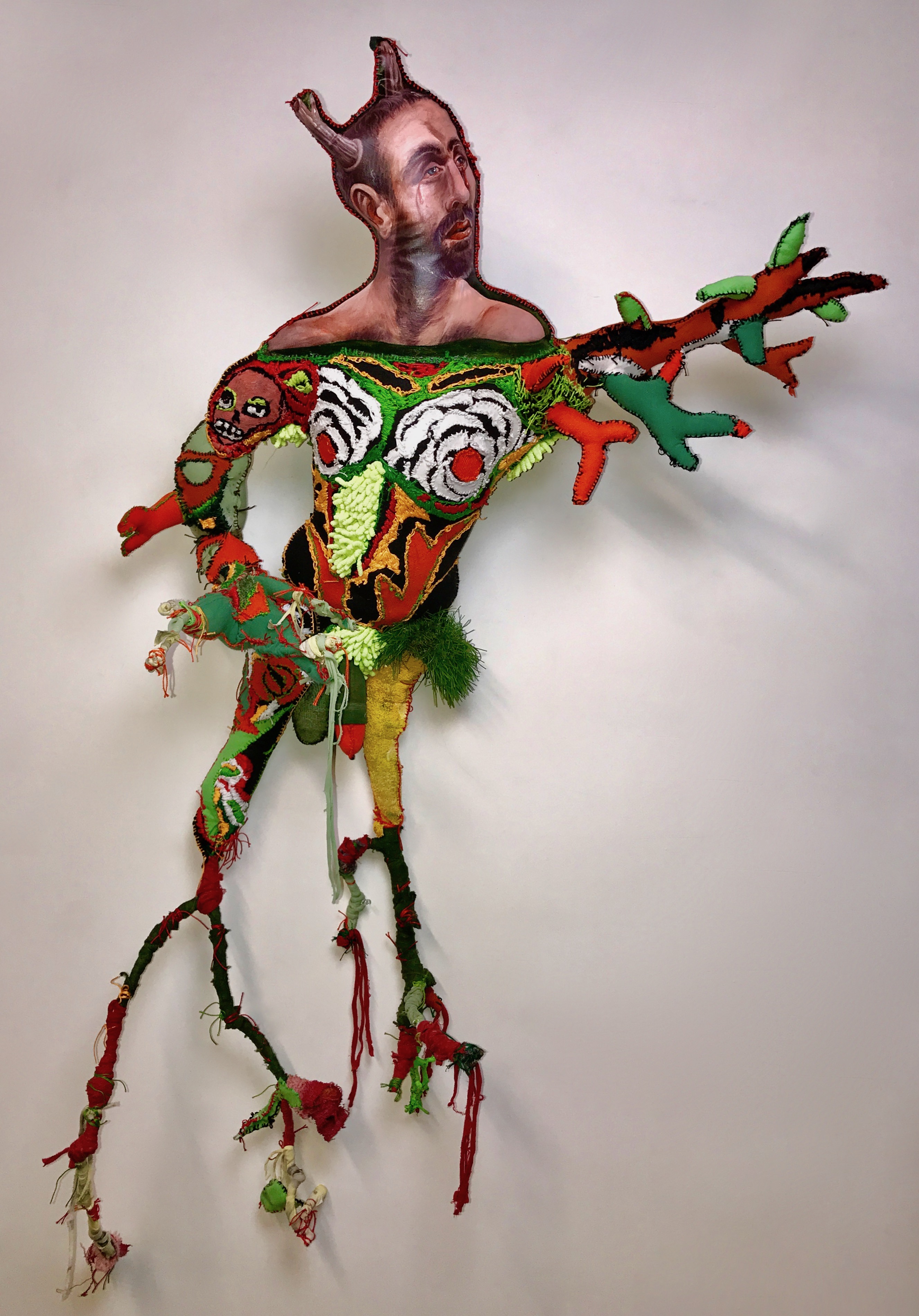 Acrylic painted canvas, recycled fiber, embroidery floss, poly-fil