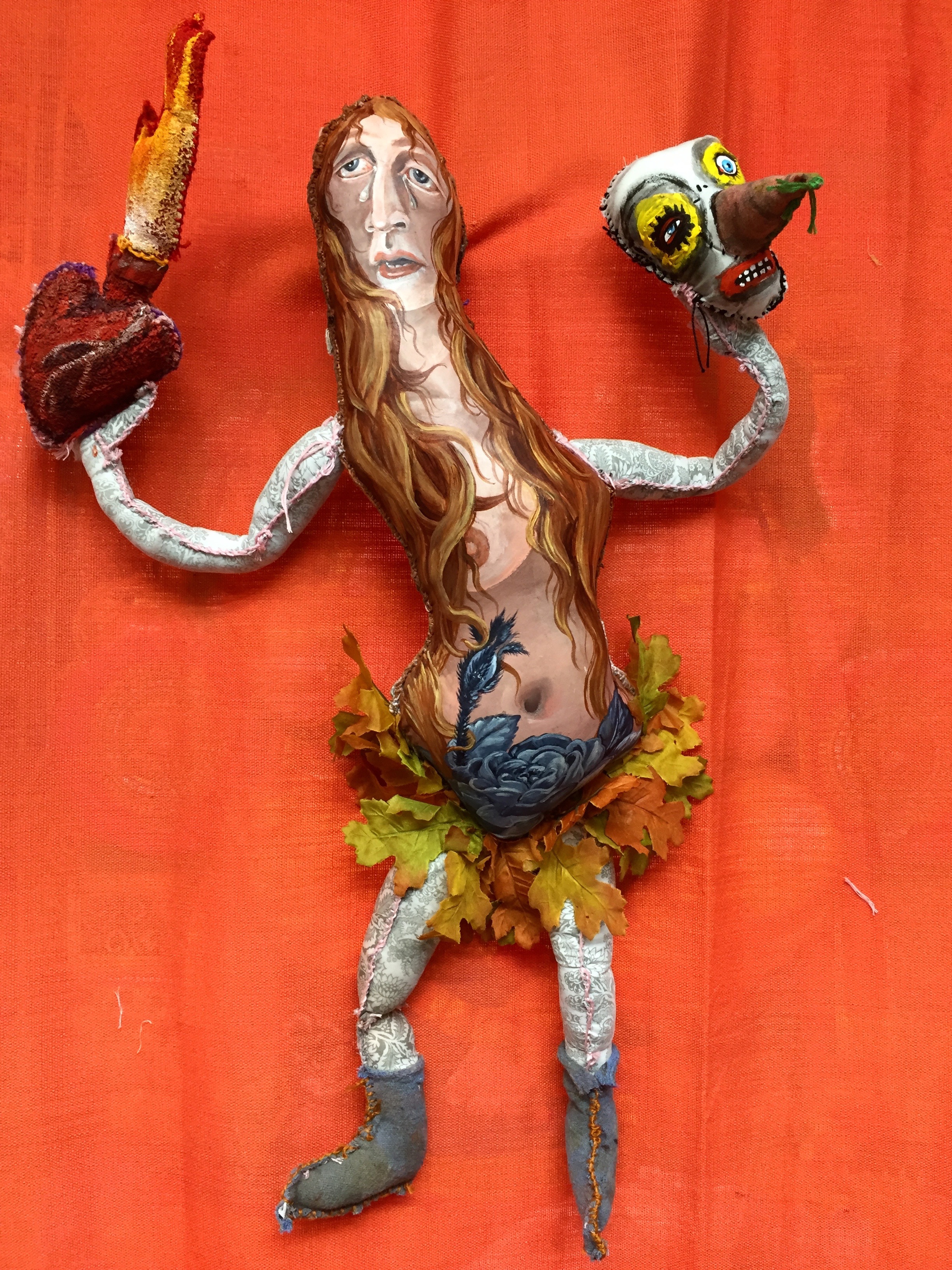 IMG_1296 “The Magdalene” 2017 mixed media: painted recycled fabric, artificial foliage, thread, poly-fill approx. 26x19x6 inches