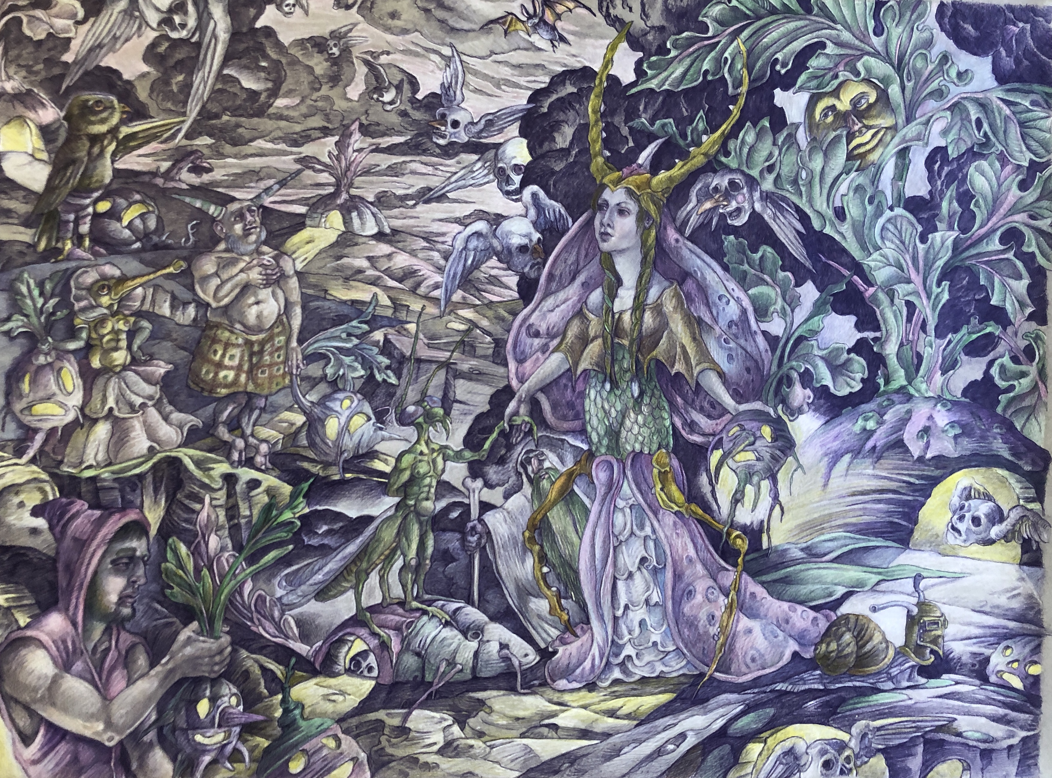 Colored pencil on toned paper