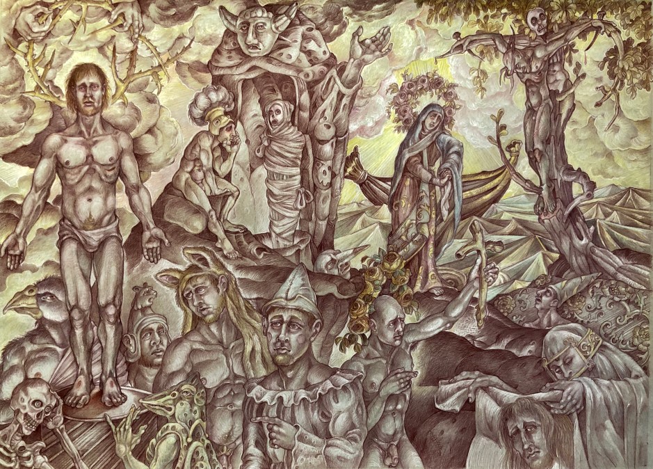 The Way of the Cross The Way of the Cross 2019 Sanguine and colored pencil with white chalk highlights on toned paper 18 by 24 inches