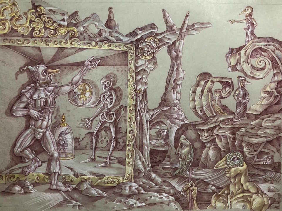 Wanderer’s Tale, 2019 copy The Wanderer’s Tale 2019 Sanguine pencil, white charcoal highlights on toned paper 18 by 24 inches